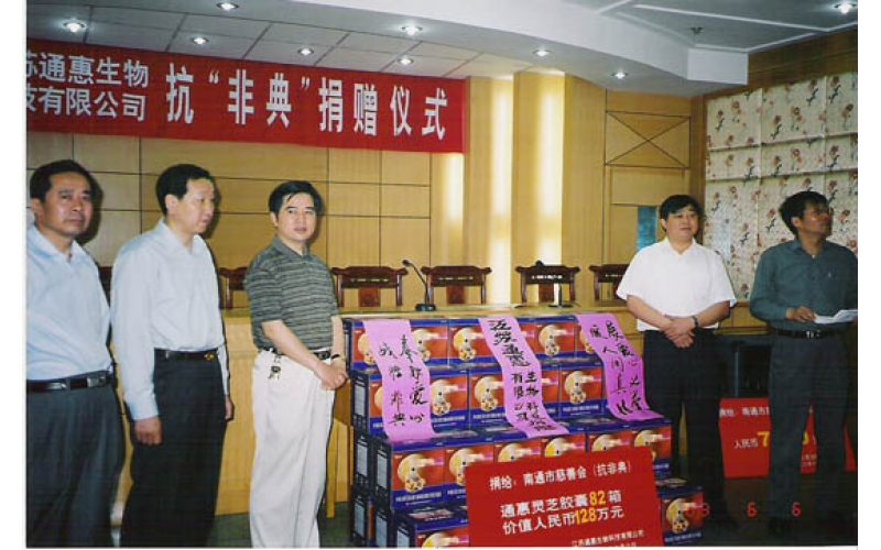 2004年9月24日,陳惠董事長向南通市副市長宋飛捐贈的公司產品作為首屆世界大城市帶發展高層論壇專用保健品。